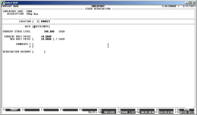 REVALUATION ACCOUNT This field will only appear if you have chosen Y or A in the utilities question ASK FOR G/LEDGER CODE IN INV. ADJ & REVAL? (see SECTION