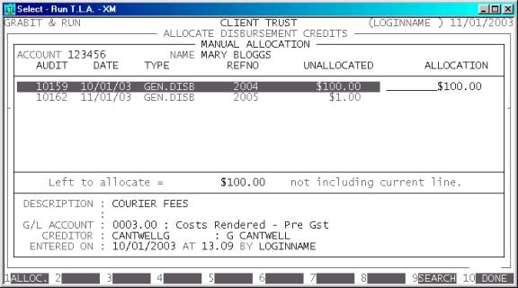 T.L.A. cannot automatically allocate the debit to the credit. Instead, you must